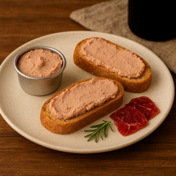 Este producto se elabora a partir de fiambre de curado, procesado con carnes frescas seleccionadas, que se mezclan con ingredientes, condimentos y aditivos cuidadosamente escogidos. El resultado es una pasta fina y homogénea, que ofrece una textura suave y una consistencia ideal para untar o disfrutar directamente. Tras un proceso de amasado y homogeneización, el jamón curado se envasa en prácticas tarrinas monodosis, perfectas para tapas, bocadillos o para llevar.